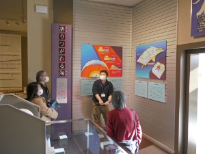 当館は、三陸ジオパークの主要拠点施設になっています。そこで、平成28年度から三陸ジオパークに関する情報発信を行うコーナーを設置しています。不定期で展示内容を変更し、三陸ジオパークの魅力を発信しています。