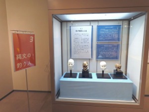 大船渡市には縄文時代の貝塚遺跡が数多くあり、シカの角などでつくられたさまざまな漁の道具が見つかっています。その中でも代表的な道具である釣針に注目し、当時の海の生業を考える展示を実施しました。