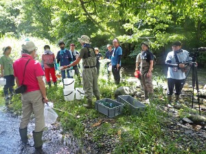 今年度は、住田町民俗資料館の見学と、二つのワークショップ(「気仙川の生き物を観察しよう! 」「気仙川の鉱物を観察しよう!パンニング体験」)を行いました。