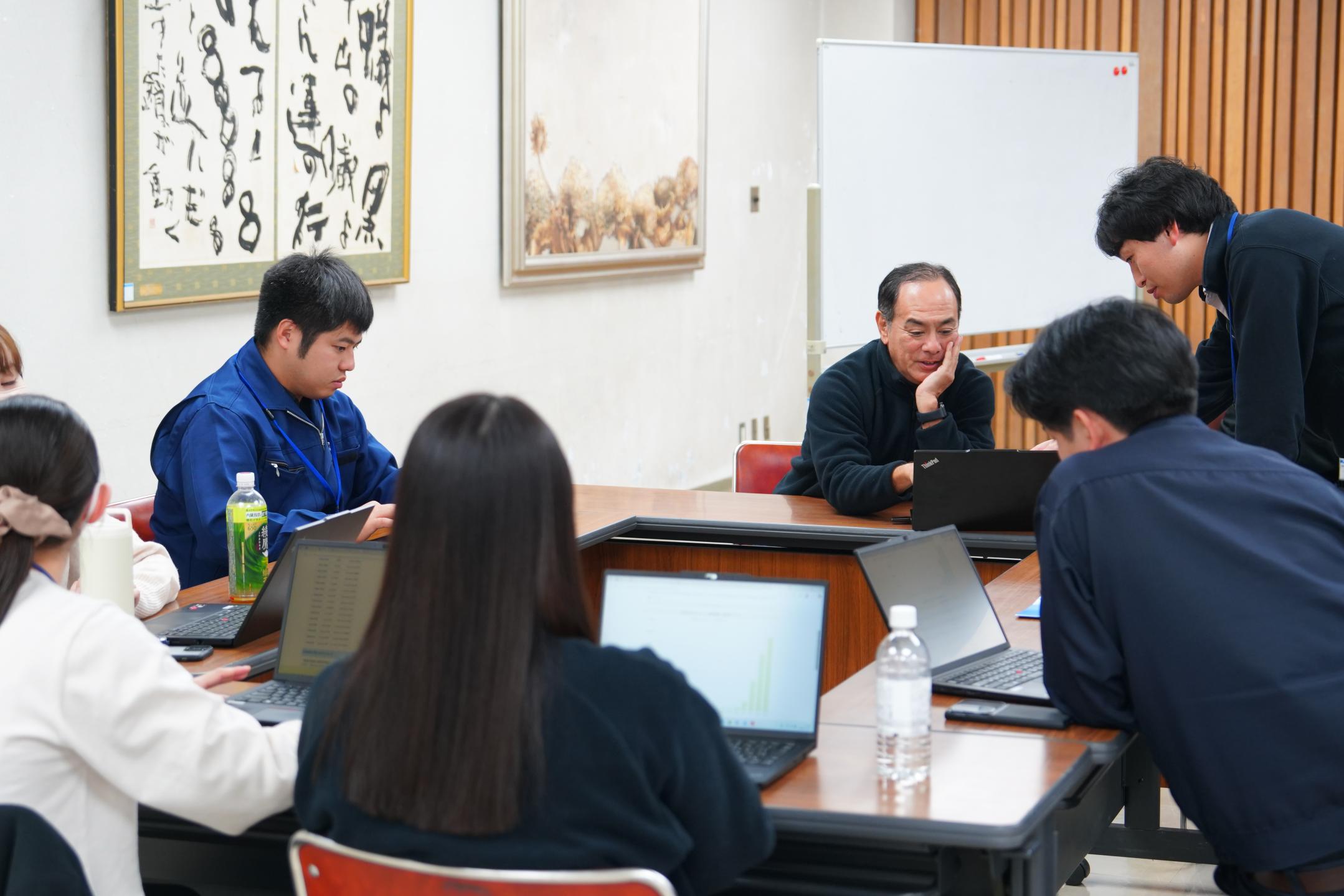 各班とも、研究の方法や実施スケジュール、「チームメンバーが考える、市のPRすべきポイント」などについて意見を出しあい、具体化を進めました。交通DXに関しては、対象とする方(移動手段に困っている高齢者)や地区を選定し、実際の困りごとやその原因などの状況を把握した上で研究することを決め、生成AIに関しては、庁内での活用推進においてリスクとなる点などの整理をしていく方針について、それぞれまとめ発表を行い、磯崎アドバイザーから助言をいただきました。