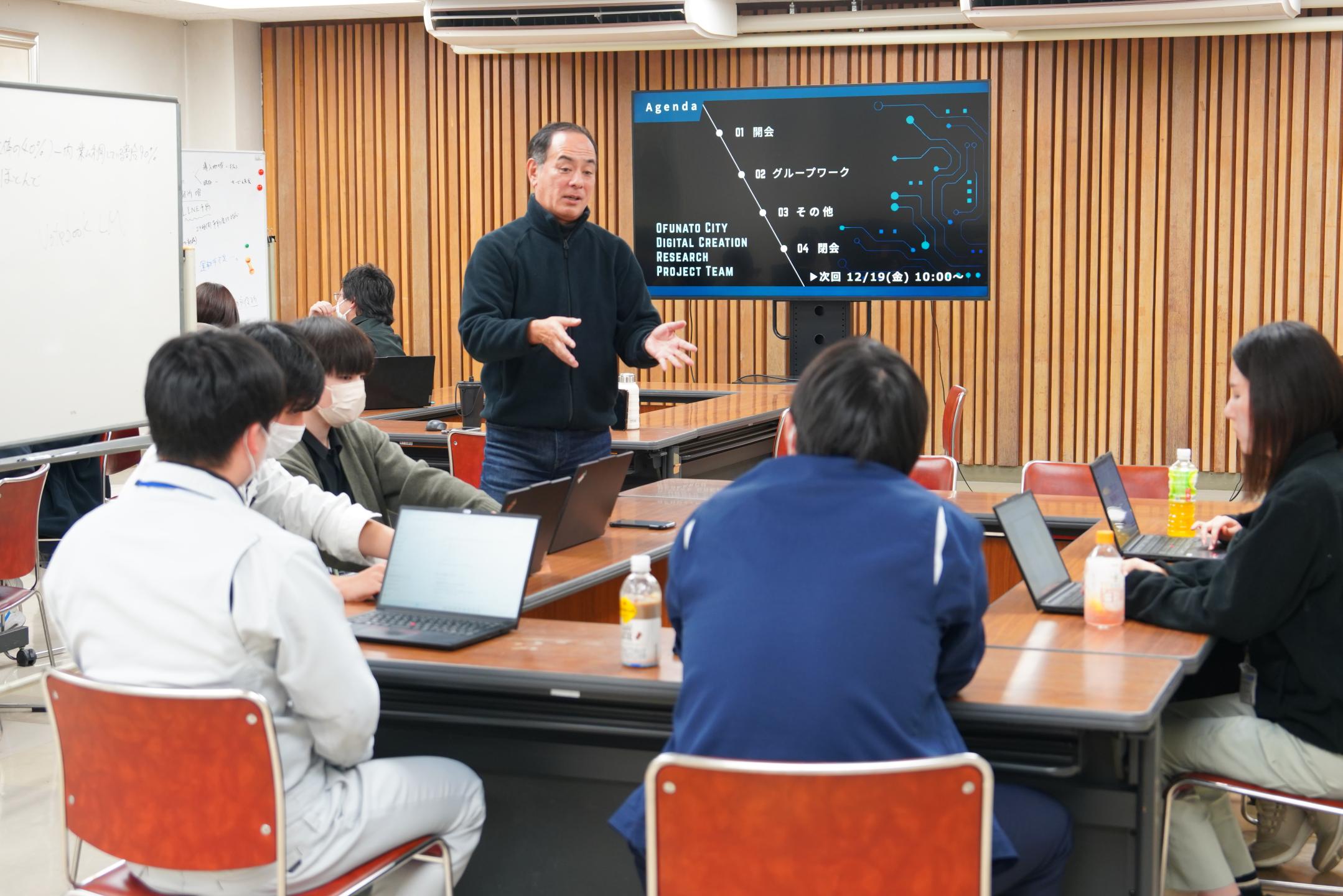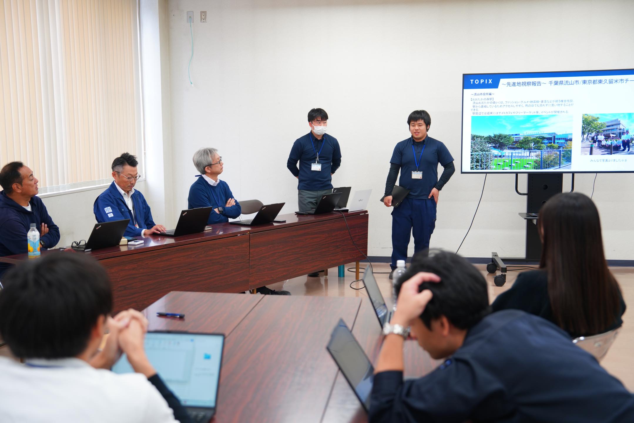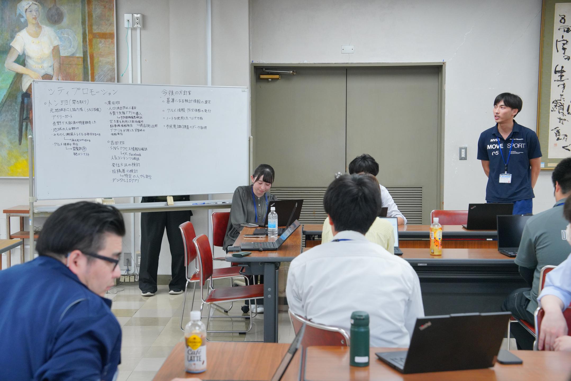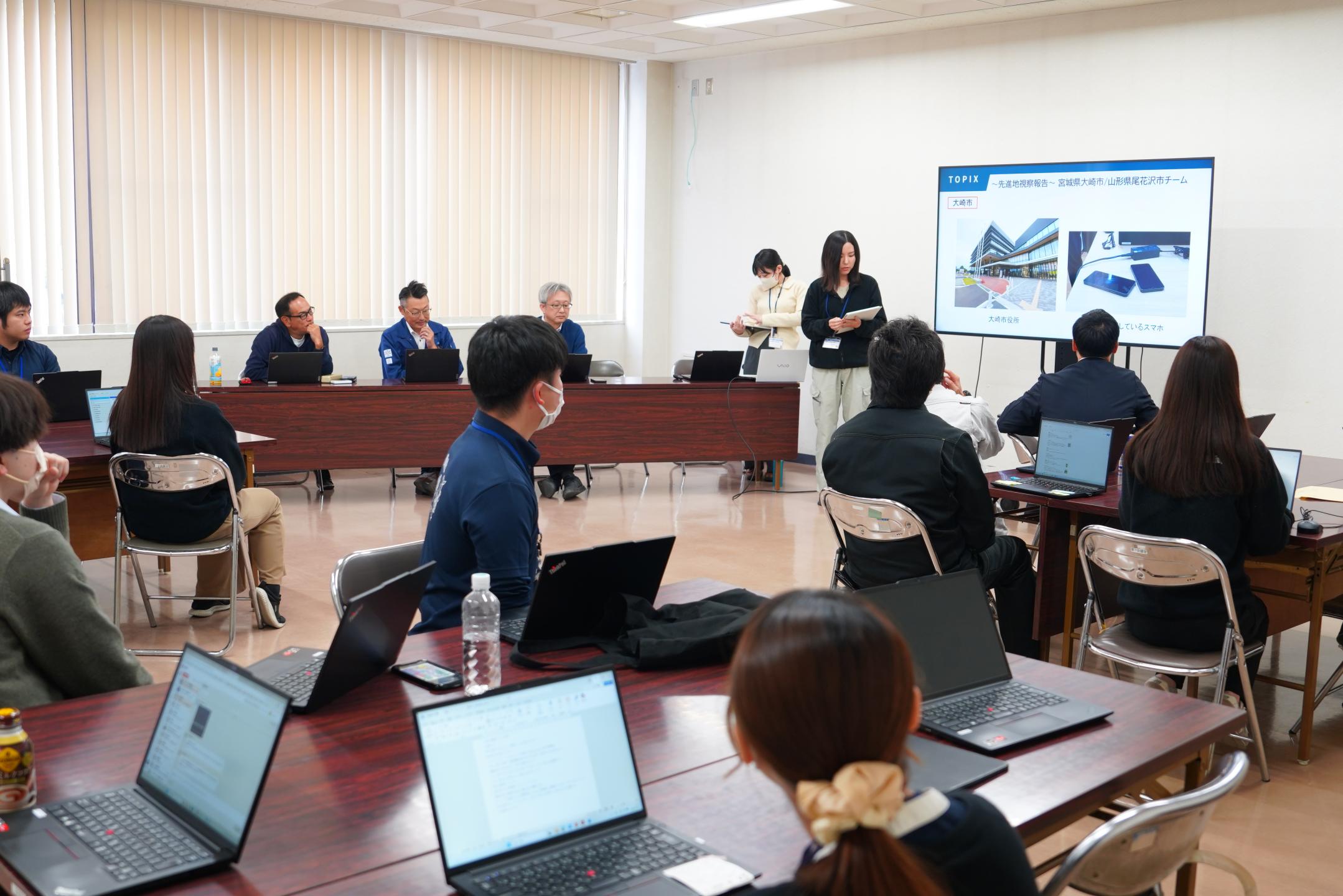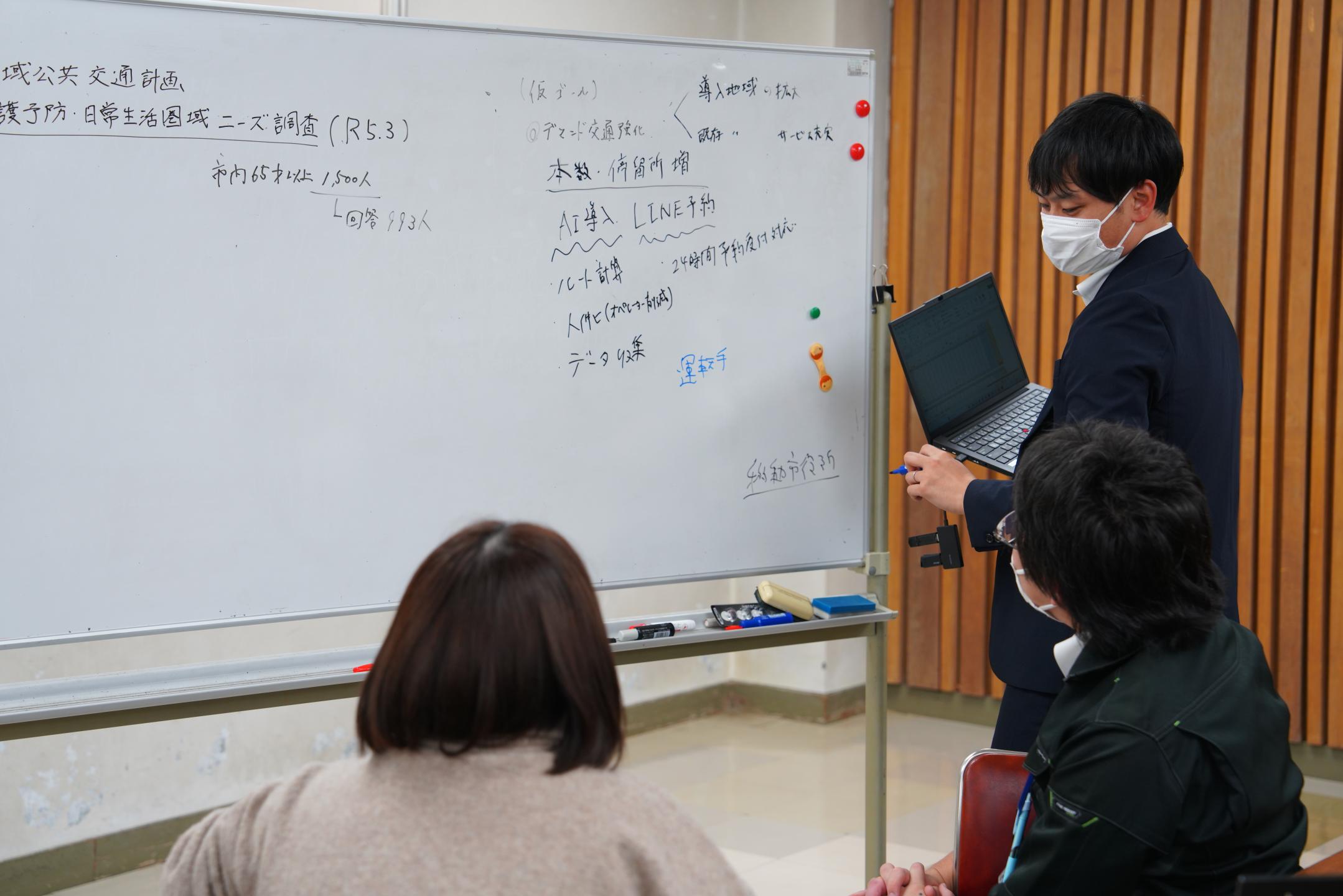 グループワークでは、各班が今年度の研究や取組方針について話し合い、生成AIは職員向け体験講座を今年も実施すること、シティプロモーションに関しては当市に人を呼ぶためのアイディア、交通DXに関しては、まず交通機関の現状の課題や誰を対象として取組を検討するか、それぞれまとめ発表を行いました。