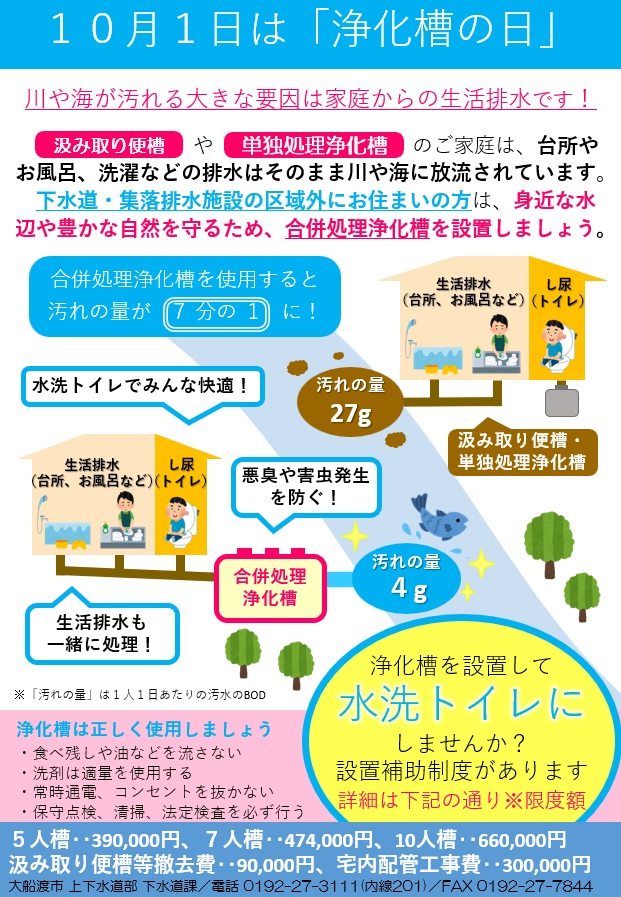 資することを目的に、毎年10月1日を「浄化槽の日」と定めております。
