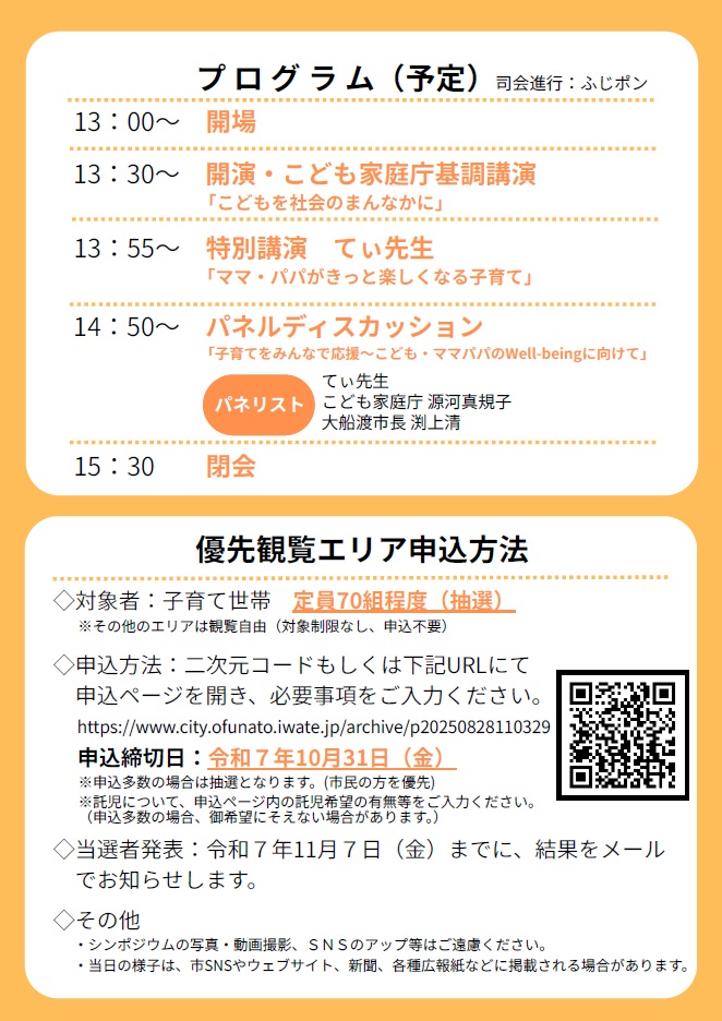 - 備考 優先観覧エリア以外での観覧は申込不要(子育て世帯以外の方も御覧いただけます。)