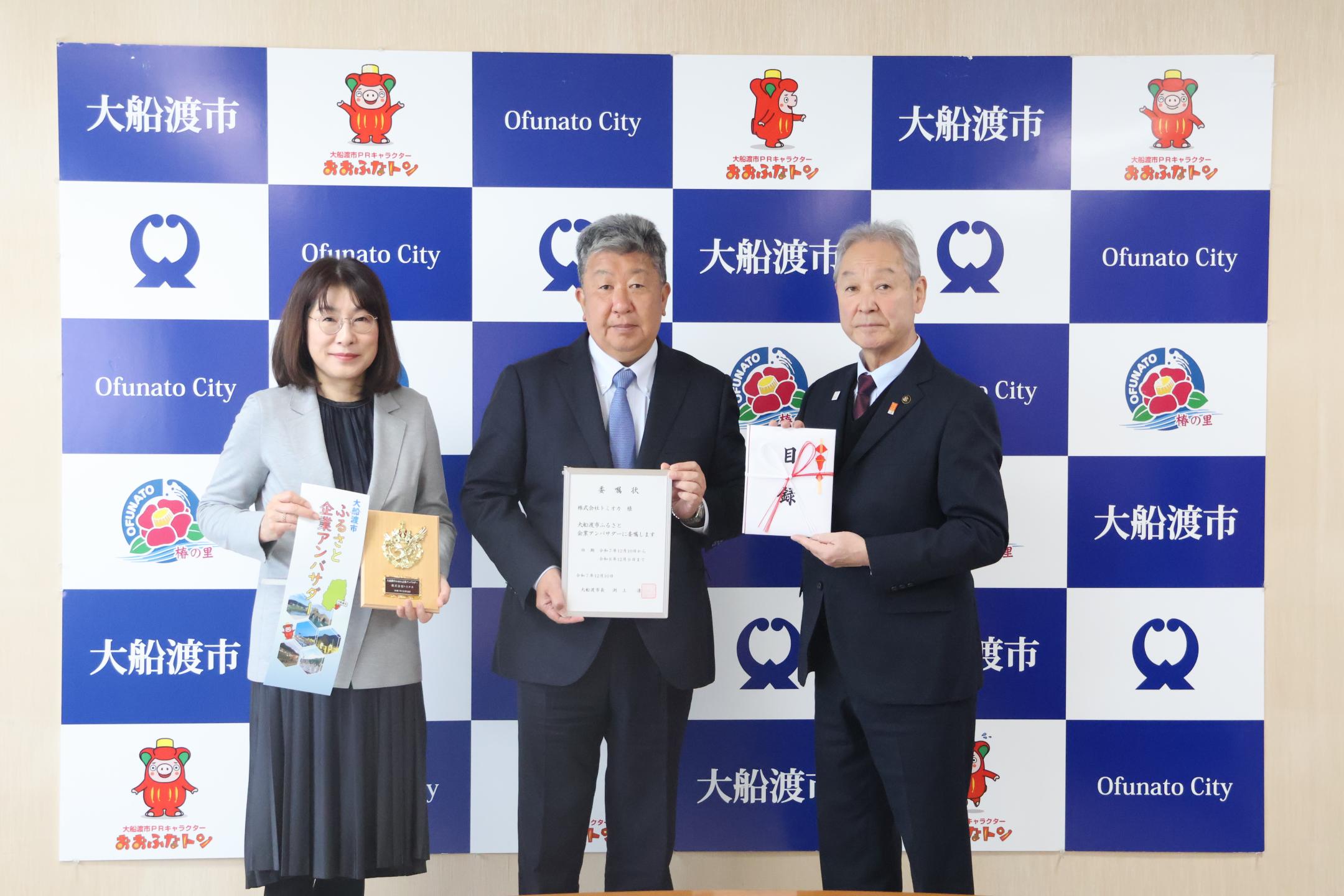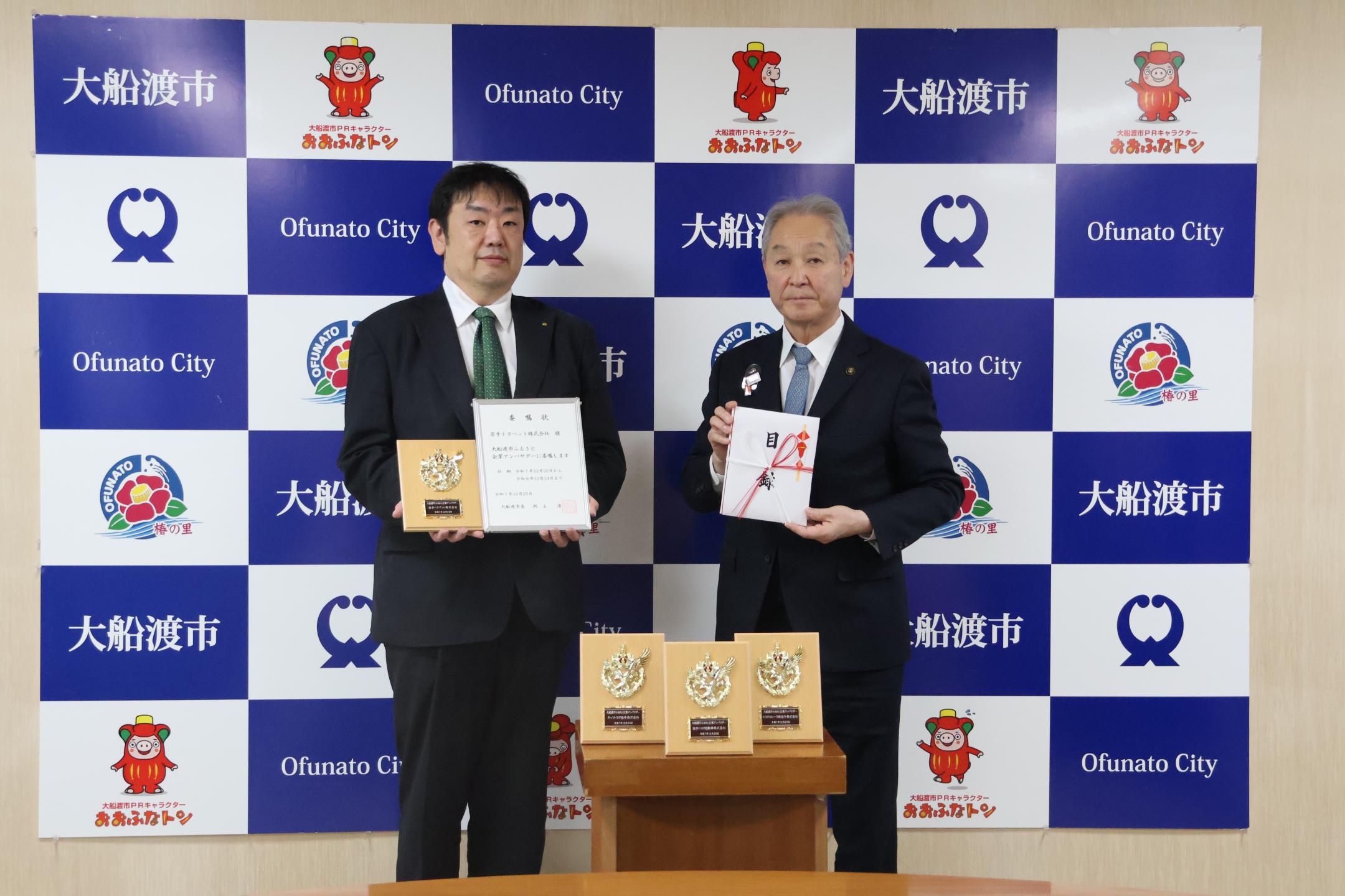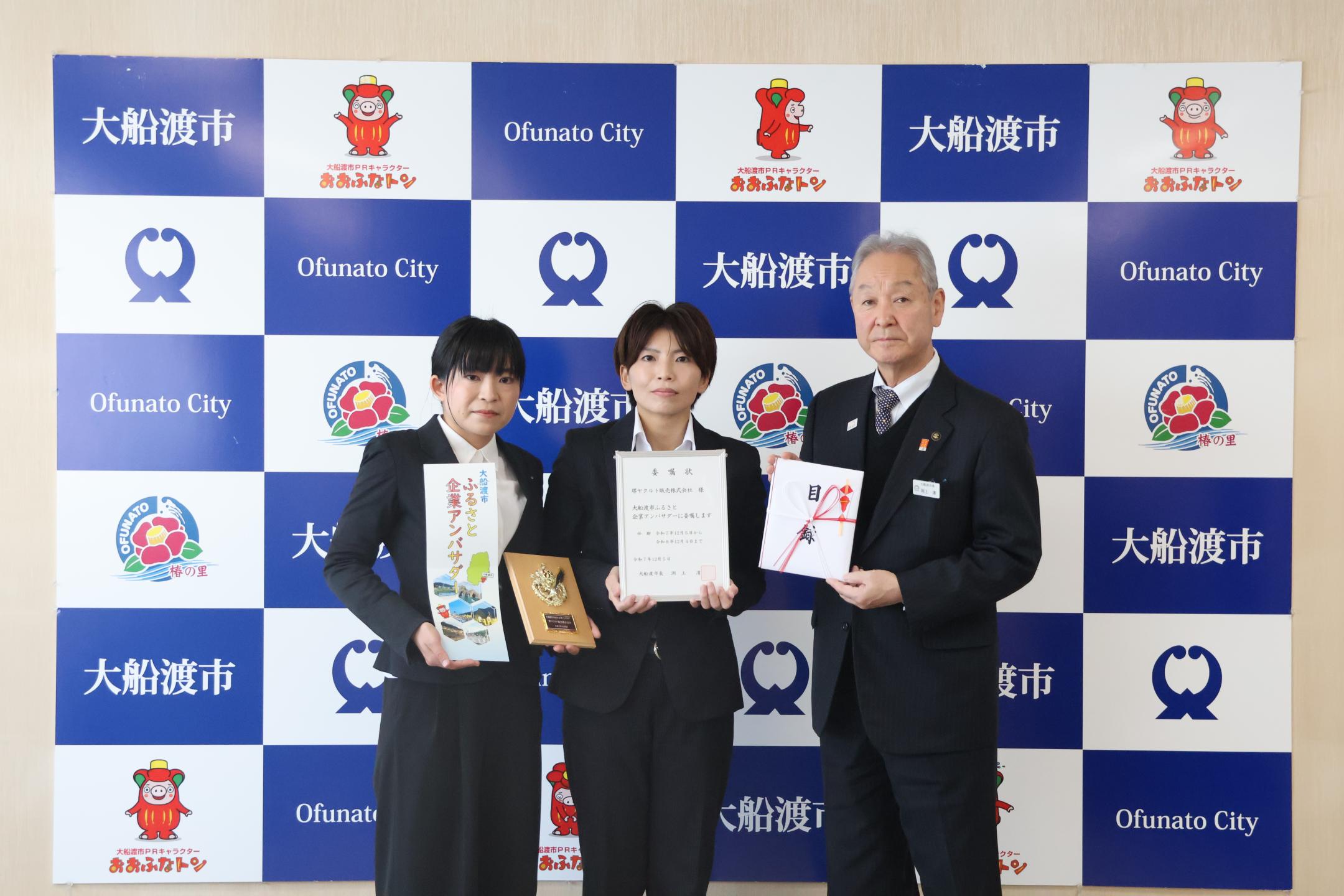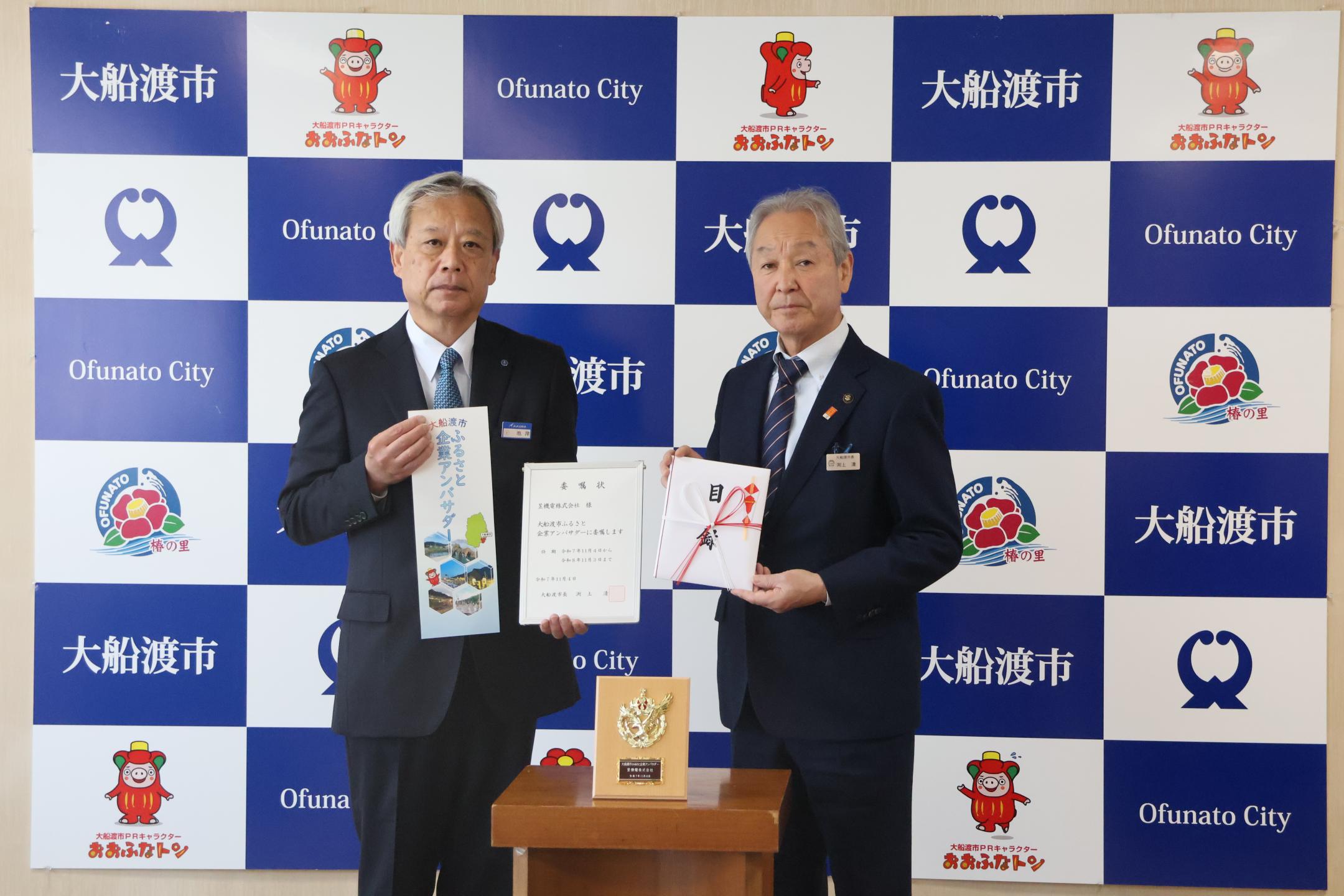 また、1年間、市の魅力を発信していただくことを目的に「大船渡市ふるさと企業アンバサダー」を委嘱しています。委嘱した企業へは、委嘱状、楯、ステッカーを贈呈しています。