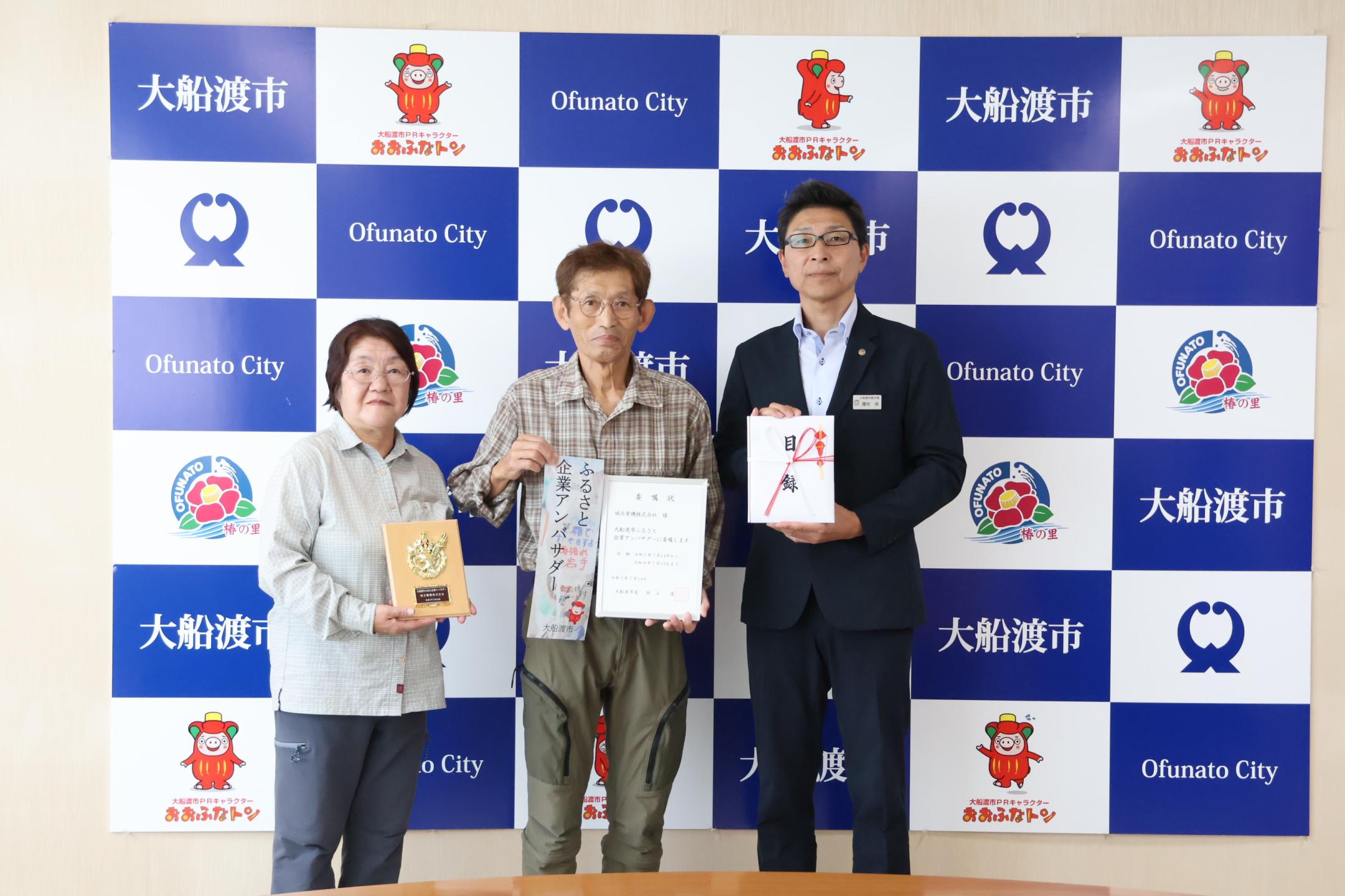 また、1年間、市の魅力を発信していただくことを目的に「大船渡市ふるさと企業アンバサダー」を委嘱しています。委嘱した企業へは、委嘱状、楯、ステッカーを贈呈しています。