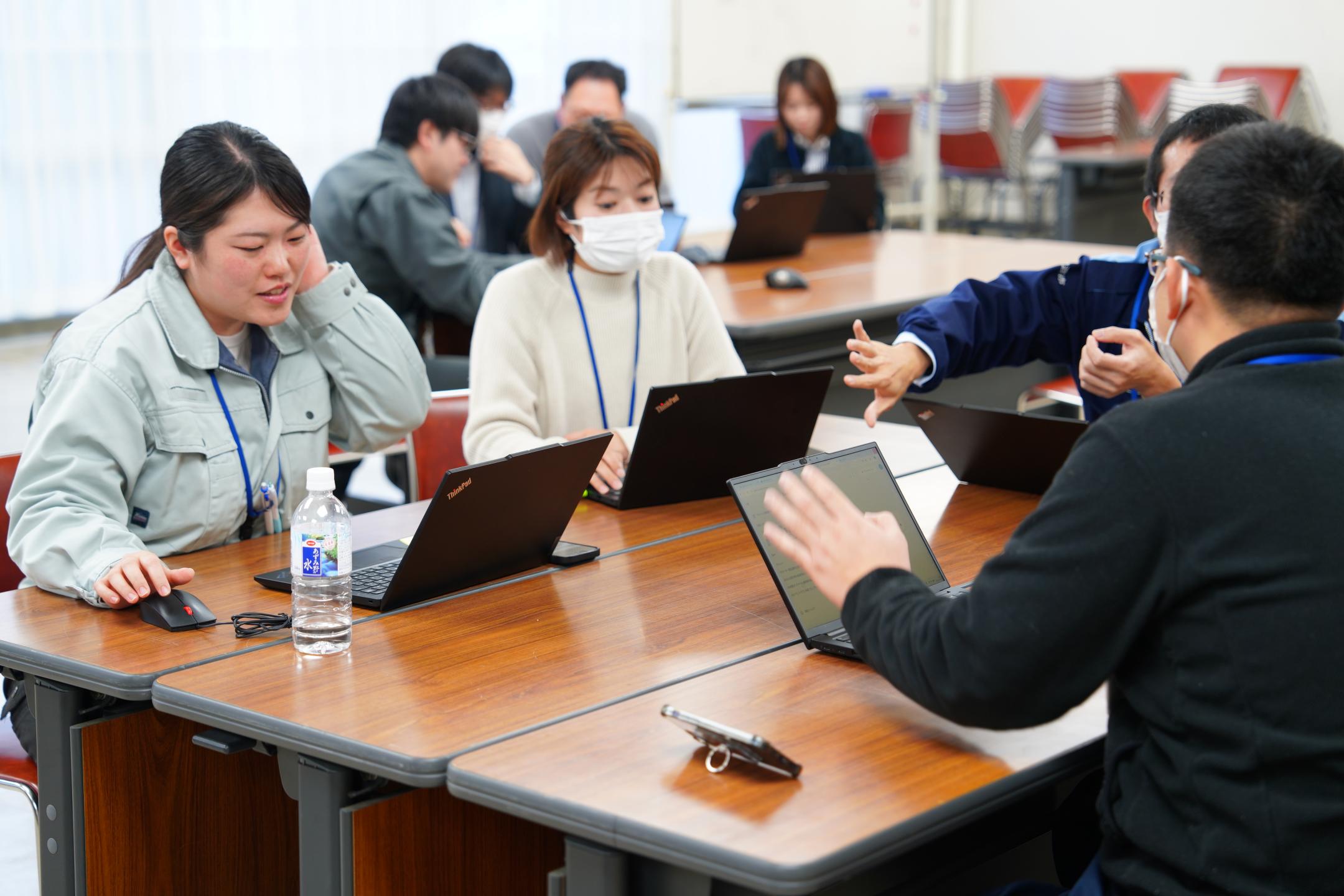 生成AIは的確な指示がなければ求める回答が得られないことや、精度を上げるための手法などを学び、それらを踏まえてグループごとに指示(入力)内容を意見交換、最後に各グループがまとめたものを発表し、磯崎CDO補佐官から助言を受けました。