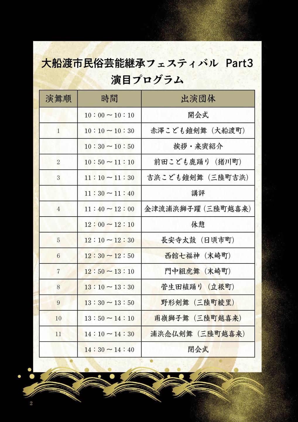 市内の青壮年民俗芸能団体及びこども民俗芸能団体が日頃の活動の成果を披露するイベント「大船渡市民俗芸能継承フェスティバルpart3」を開催します。